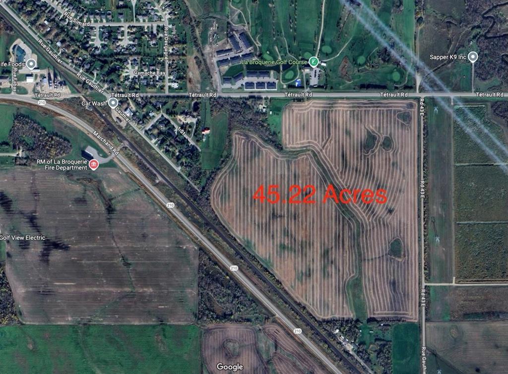 R16//La Broquerie/45.22 Acres of Prime Development Land. An exceptional opportunity in La Broquerie! This expansive 45.22-acre parcel is ideally situated on the east side of town, fronting paved Tetrault Road. Municipal services run along the west edge of the property on First Street, enhancing development potential. The RM is currently undergoing a rezoning master plan, and this land can be re-designated as part of the process. Early applicants have the unique advantage of shaping their own zoning plan and submitting it for consideration while adjustments are still possible. Seize this rare chance to influence the future of this prime development site! (id:20902)