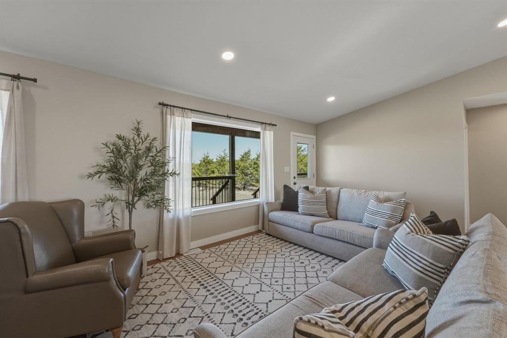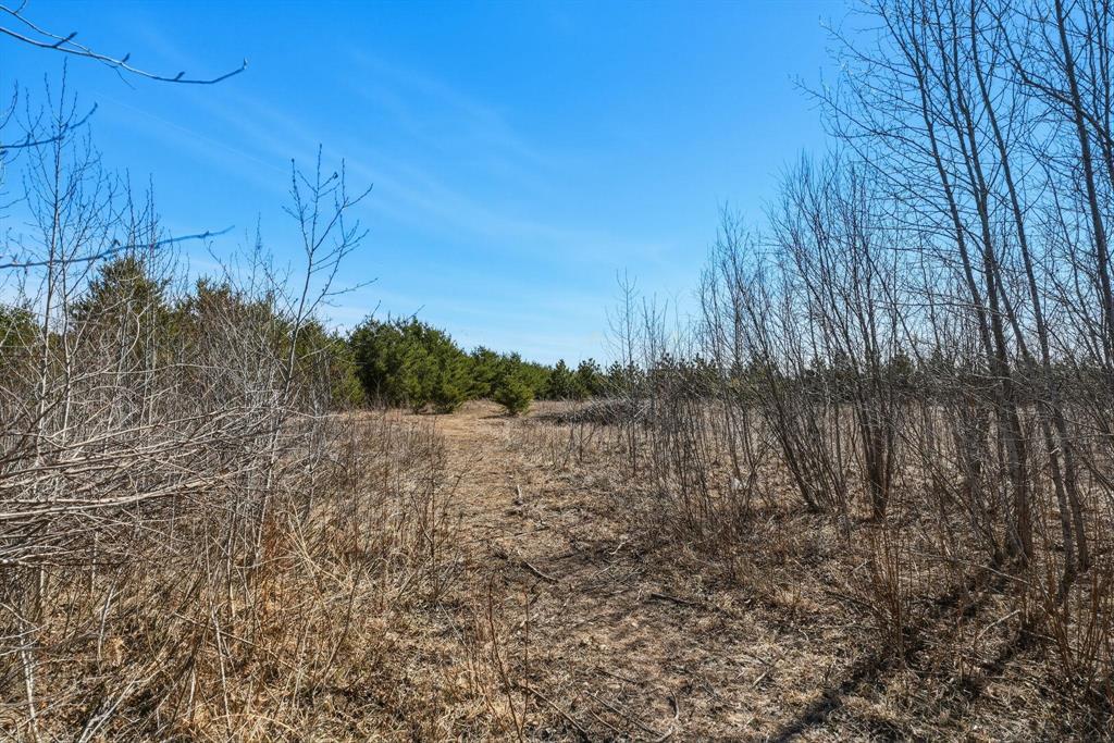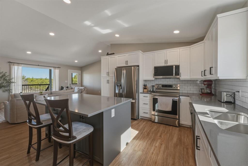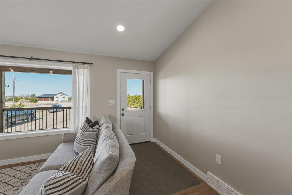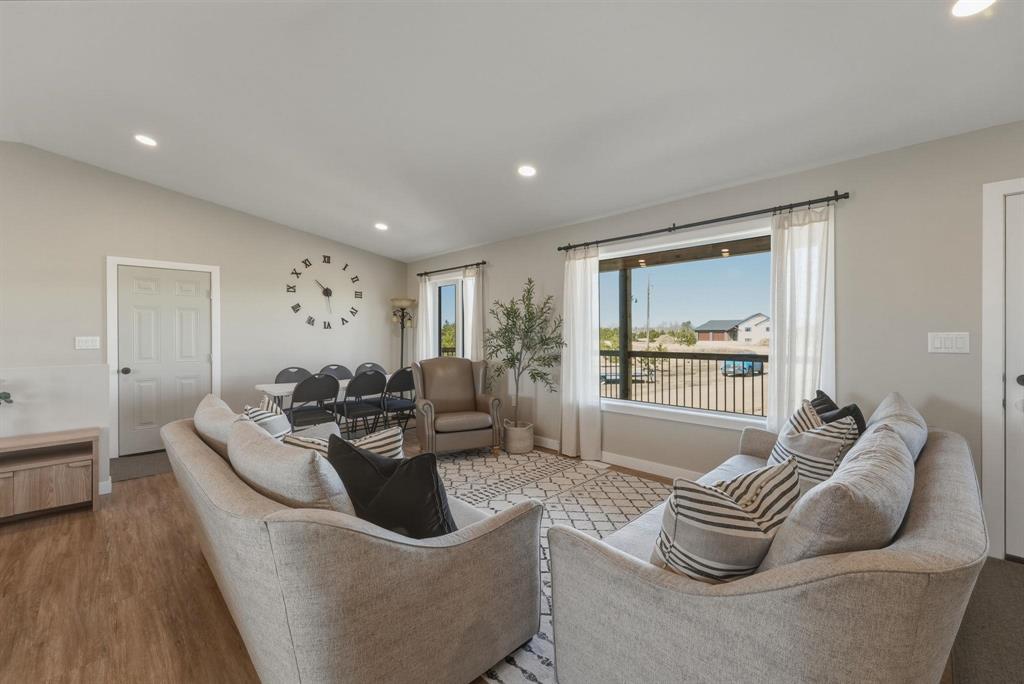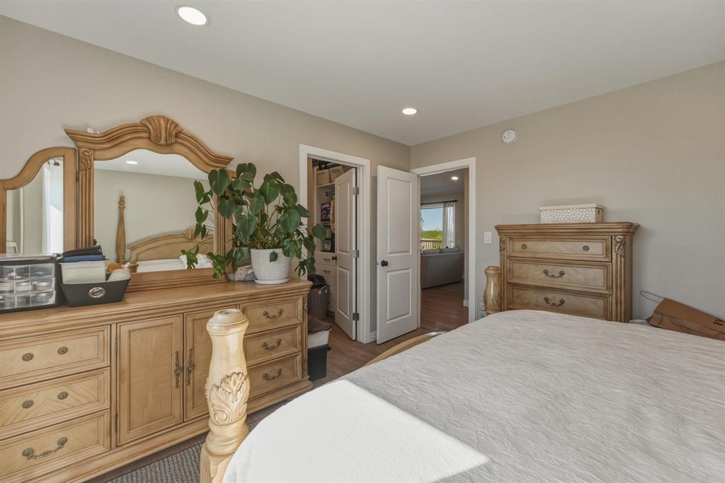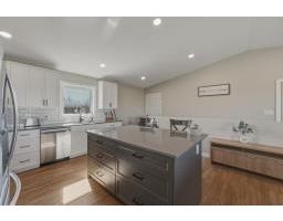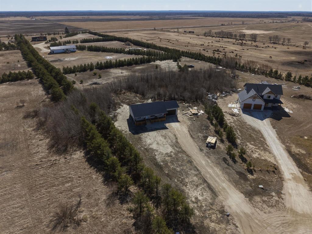 R16//Marchand/Experience the peace and privacy of country living in this recently completed (2025) 5-bedroom, 3-bathroom raised bungalow set on a picturesque pie-shaped 2-acre lot in Marchand. Surrounded by mature trees, the property offers a rare blend of natural beauty, seclusion, and scenic views. The main floor showcases a bright, open-concept design with vaulted ceilings and expansive windows that bring the outdoors in. A well-appointed chef s kitchen features quartz countertops, a tiled backsplash, and upgraded stainless steel appliances, all thoughtfully laid out for both everyday living and entertaining. The primary suite includes a private ensuite, complemented by a second bedroom and full bathroom on the main level. The fully finished lower level offers exceptional additional living space with a large rec room, three more bedrooms, a third full bathroom, and dedicated laundry. Quality finishes throughout include luxury vinyl plank flooring, modern color selections, a gas furnace, water softener, and an attached double garage. Step outside to a full-width veranda an ideal place to take in the quiet surroundings and sweeping views. A true opportunity to own a turnkey country property in a desirable setting. (id:20902)